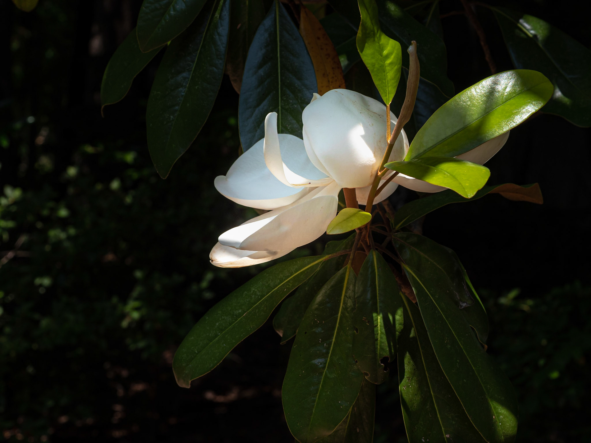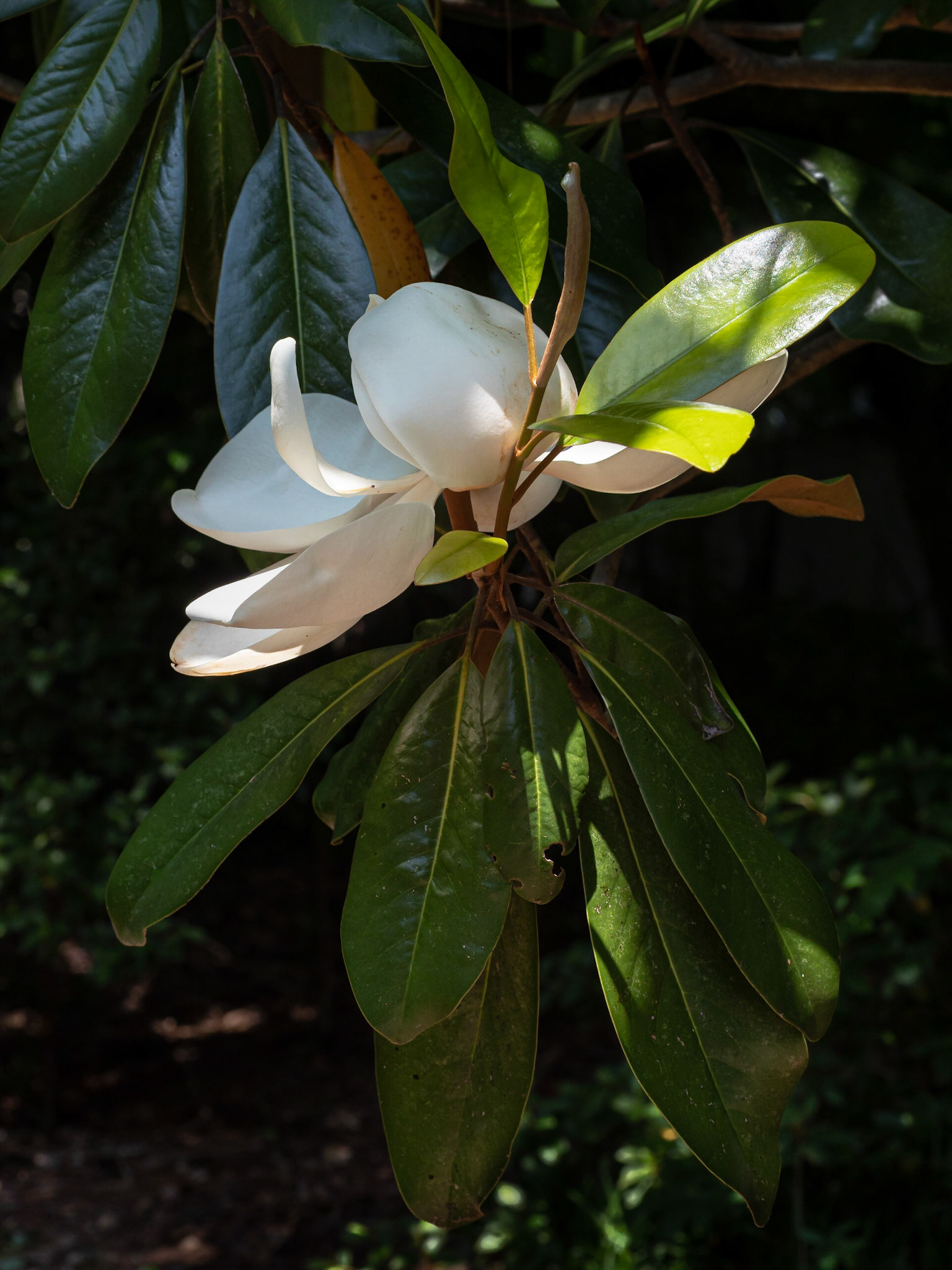 The magnolia tree in our backyard has started blooming and it looks like there are a bumper crop of sweet smelling blossoms. Unfortunately, most of them are pretty high up in the tree and out of reach for photography unless I use my 75-300 mm lens, which is not my best lens and rarely produces a good image unless I use a tripod.